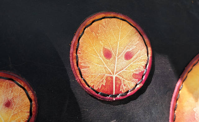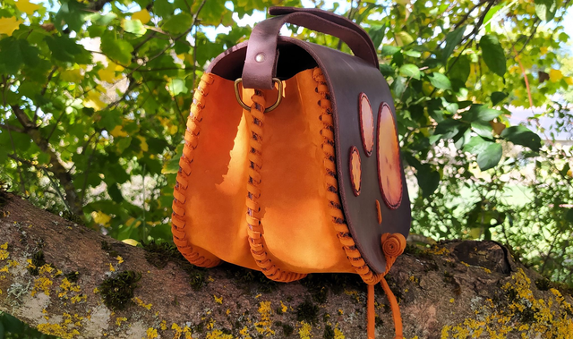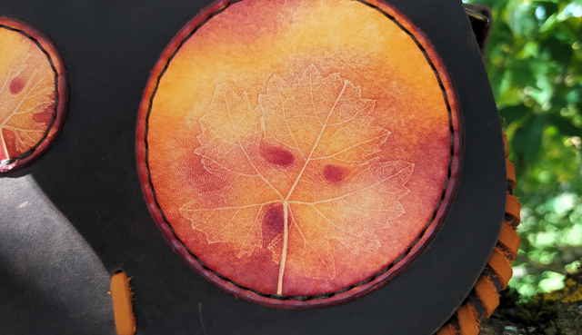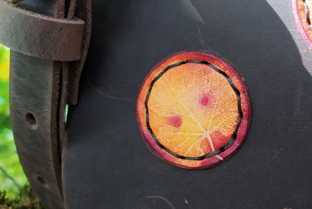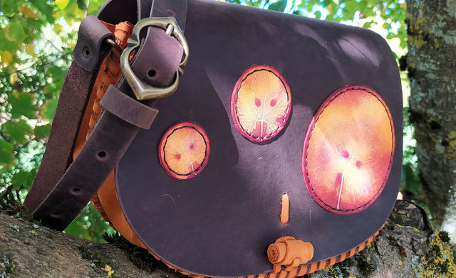Le sac taille M est pour moi, la taille idéal! Ni trop petit, ni trop lourd. Principalement fabriqué avec un cuir gras et bubulles en cuir tannage végétal marqué de l'empreinte unique d'une véritable feuille, puis teint à la main par mes soins.